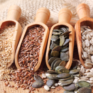 It includes poppy seeds, sesame seeds, sunflower seeds.