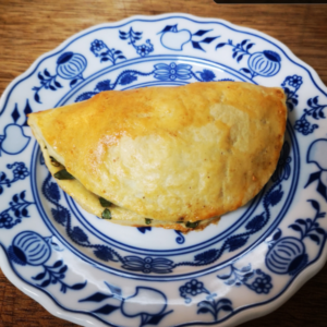 Our spinach & feta pies are perfect for a light lunch or dinner. Just add a salad and you are good to go! Baking at 200 degrees for 30-40 minutes.